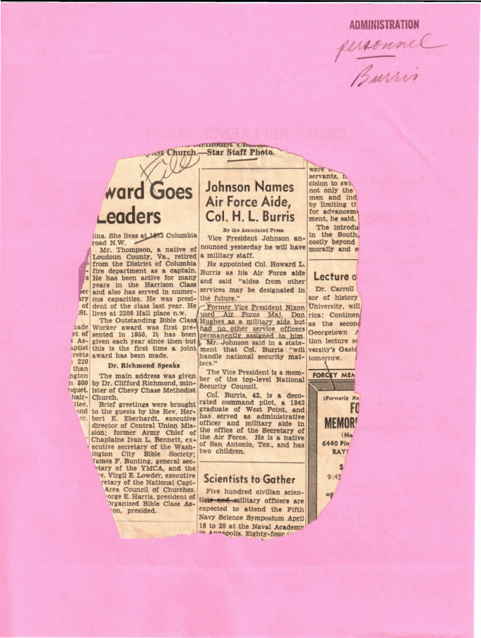 Like many of his closest, most-trusted aides (ergo, the most willing sycophants among the many Lyndon Johnson employed) Howard L. Burris Jr. was from Texas. He had known Johnson for decades according to author John M Newman, [4] although it is unclear when and how they first met, or the circumstances of his appointment to West Point in 1938 (officially, the appointment was made by Congressman Kleberg in his own district, where LBJ worked as the office manager, often impersonating the “playboy congressman”), the year following Johnson’s election to Congress (presumably, the appointment would have been initiated the year before that).