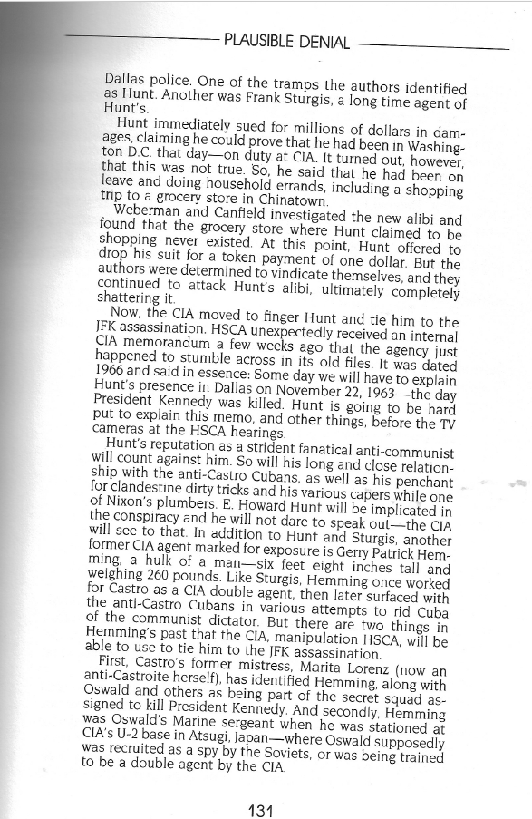 E. Howard Hunt’s Presence in Dallas on Nov 22, 1963 — and the Veracity of His Confessions Forty+ Years Later October 31, 2020November 2, 2020 by lbjthemasterofdeceit, posted in Uncategorized The third of four pages of Victor Marchetti’s August 14, 1978 article in the Liberty Lobby’s magazine The Spotlight, reproduced by Mark Lane in Plausible Denial: Share this: Click to share on X (Opens in new window) X Click to share on Facebook (Opens in new window) Facebook Like Loading... Related Pages: 1 2 3 4 5 6 7
