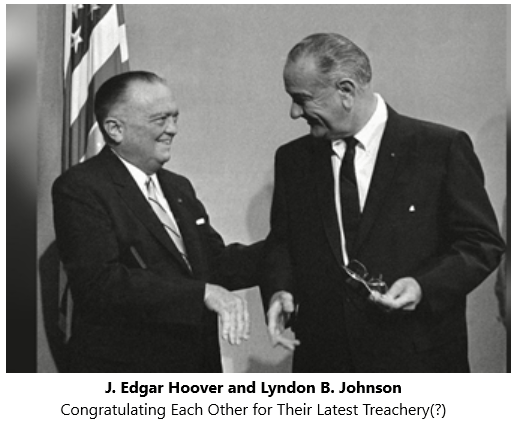 The patterns established by Lyndon B. Johnson, J. Edgar Hoover and the entire upper echelon of the FBI did not end when they left the scene. Their imprint has proved to be an indelible stain that has reappeared multiple times in practically every decade since, and must be completely eradicated if there is any hope of keeping any element of democracy alive within the Republic known as the United States of America.