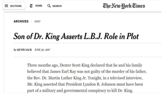 The second one should have been caught by those same investigators, had they done their work thoroughly, with a real investigation, but it wasn’t: That was left for me to solve, which I did in my book Who Really Killed Martin Luther King Jr.? The Case Against Lyndon B. Johnson and J. Edgar Hoover as summarized below.