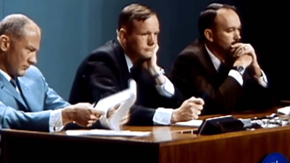 The short film clip HERE [https://www.facebook.com/reel/234761698950096] shows two scenes which were “cut” from the NASA film shown to the television audience that show technicians entering as Buzz Aldrin asks: “So I guess you wanna do it again?” This is a MAJOR piece of the puzzle that brings the conclusions expressed previously to what can be said as a state of “finality“: Sufficient to call it conclusive proof of LBJ’s “greatest” hoax. Cudos to “Gabe” for finding this item!