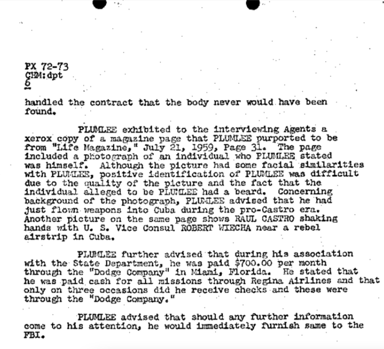 Plumlee’s Early 1960s CIA Flying Adventures Constantly Tracked by FBI