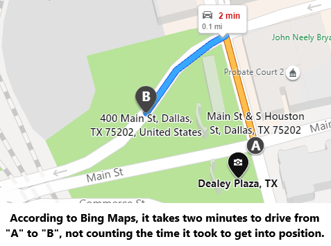 This account indicates that at least 2-3, minutes—most likely 3-5 or more given the slowness of the traffic and the time it took to get to the spot on the knoll from which he made the photo-shot—had elapsed after JFK’s limo had left the scene, and before Cancellare could have possibly snapped the shutter of his camera. That was plenty enough time for Tosh and Sergio to have already left the scene as Tosh describes it in the video below.