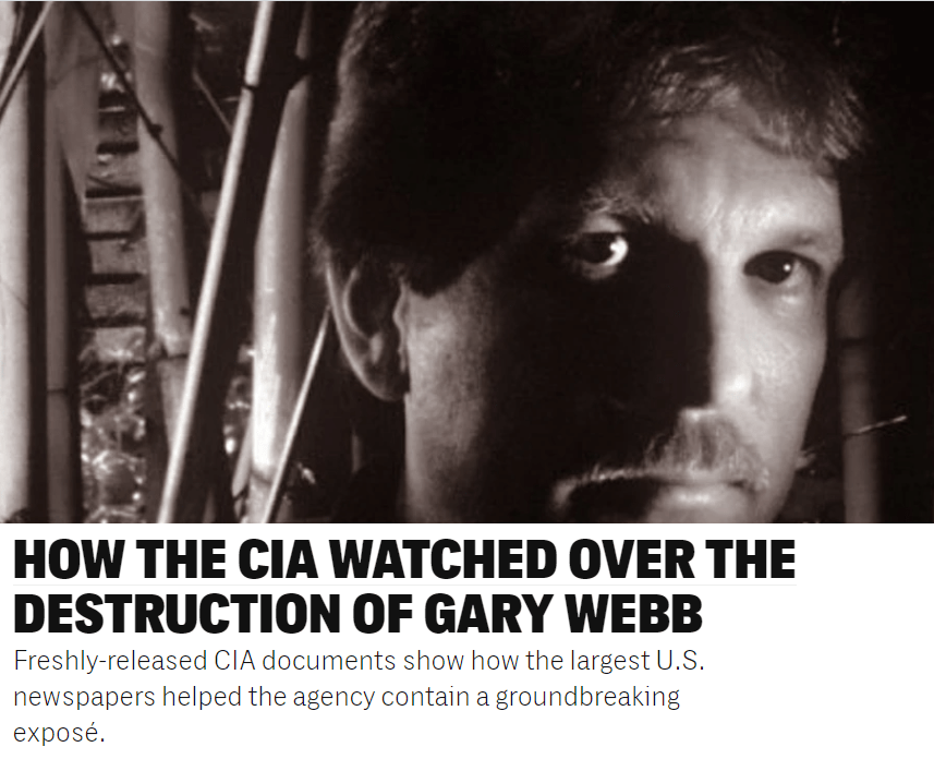 [11] From the secret CIA report completed in the aftermath of Gary Webb’s 1996 series “Deadly Alliance”, but withheld from the public for over eighteen years — See here: (https://theintercept.com/2014/09/25/managing-nightmare-cia-media-destruction-gary-webb/